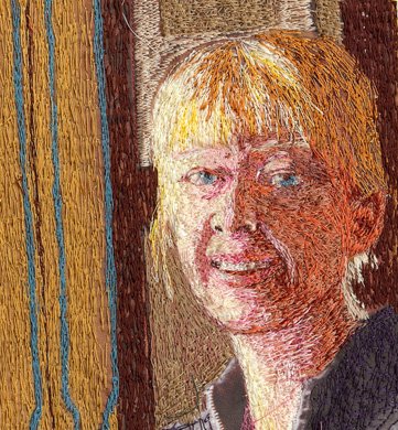 LisaLi My Sister Emily 1 - This is a thread painting of my sister who stood in the light and simply glowed! I did it last week and am not happy with the teeth or the eyes so I am going to do another, but I thought I might solicit your advice, Yes?