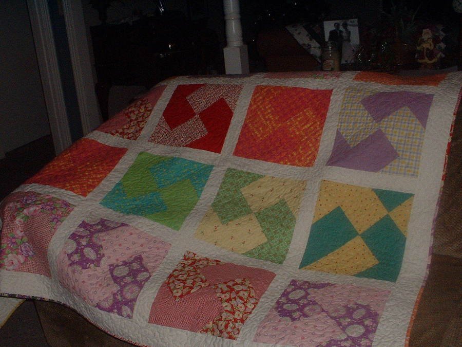 dlacefield Twisty Cakes - I made this quilt for my daughter to use in her dorm room.
