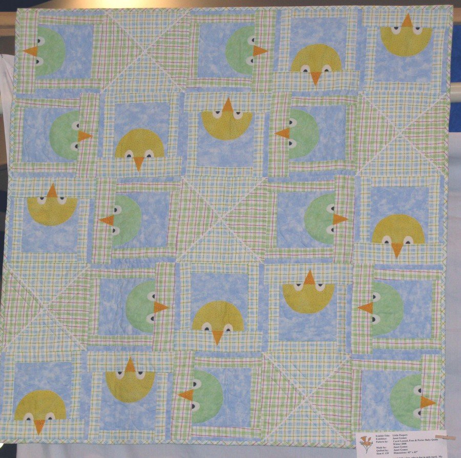 JanetG Little Peepers - This quilt is for my first great grandson. My granddaughter saw this in the magazine and loved all the little birds peeping out. The design is by Carol Loessel.