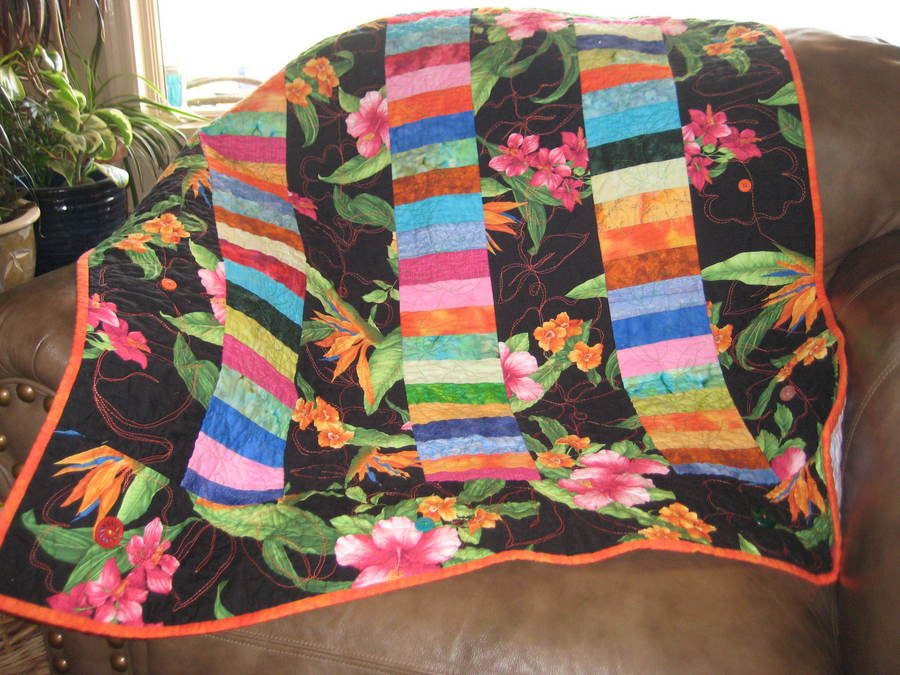 | Design Source - Description | On our family vacation, I bought the floral fabric on The Big Island and just loved the beautiful colors. It was fun to use my stash to make the bars. I can't wait to make another one! So simple but so much fun! |