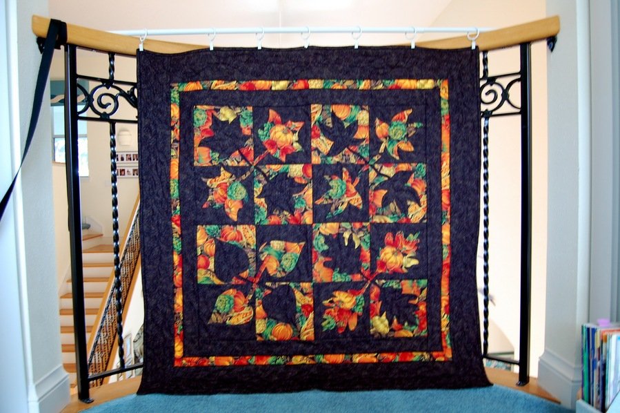 SandiMako Autumn Leaves - I'm trying to decorate my home with quilts with a goal of having a different one for every season. I had lots of autumn fabric leftover from the Thanksgiving placemats and napkins I made years ago, which was perfect for this Autumn Leaves design.