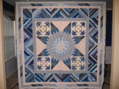 jenniferh72 Blues for Breast Cancer 3-Day Walk - This queen-size (96-inches square), machine-quilted beauty is in all cotton scraps from my stash. I made it to raise money for the Atlanta Breast Cancer 3-day walk. I'll be walking 60 miles in October to raise money for breast cancer research (Susan G. Komen for the Cure and the National Philanthropic Trust Fund). I need to raise at least $2,300 to do the walk. For every $5 you donate to the cause, I'll put your name in the drawing once. Winner (October 1 drawing) gets the quilt to keep. Find me at www.the3day.org to make a donation. Thanks!