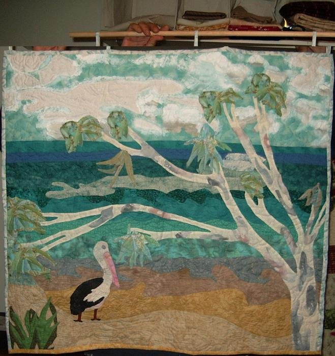 | Design Source - Description | This quilt illustrates a typical beach scene on the south-east coast of Australia. I'm not aware if a beach called Pelican Beach really exists. I used a small amount of white fabric paint to enhance the clouds. |