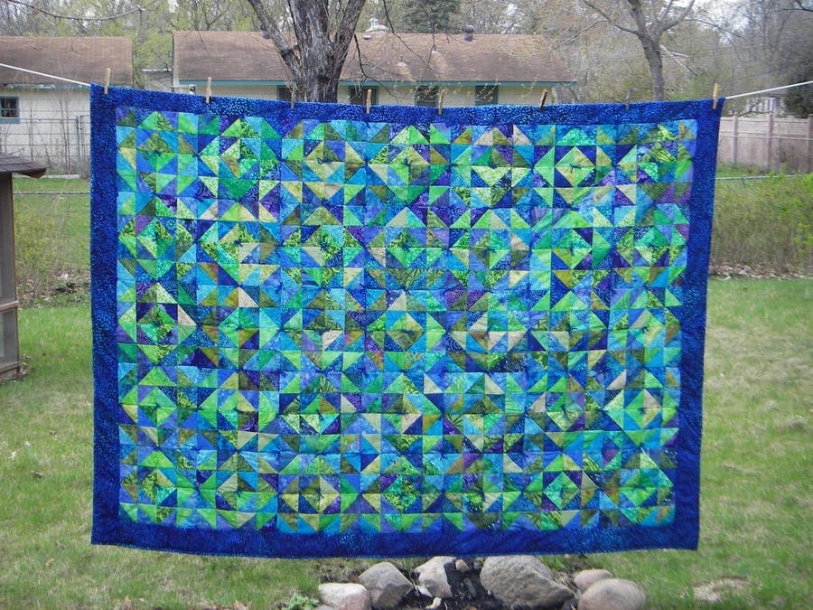 Pamelyn Jewels - 50 plus batik fabrics used for this half-square triangle beauty!