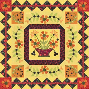 | Design Source - Description | A pieced and appliqued quilt by Pat Sloan using her fabric line Arabella from P&B. |