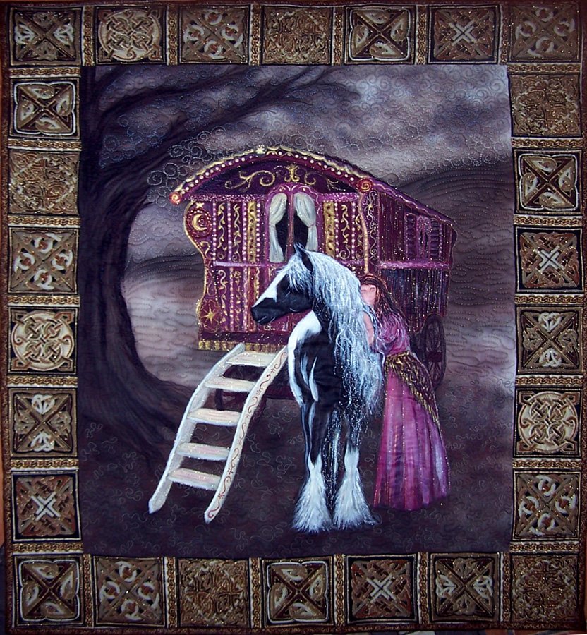 | Design Source - Description | There’s an old saying, which goes “Gypsy Gold does not chink and glitter, it gleams in the sun, and neighs in the dark”. This was the inspiration for this quilt. |