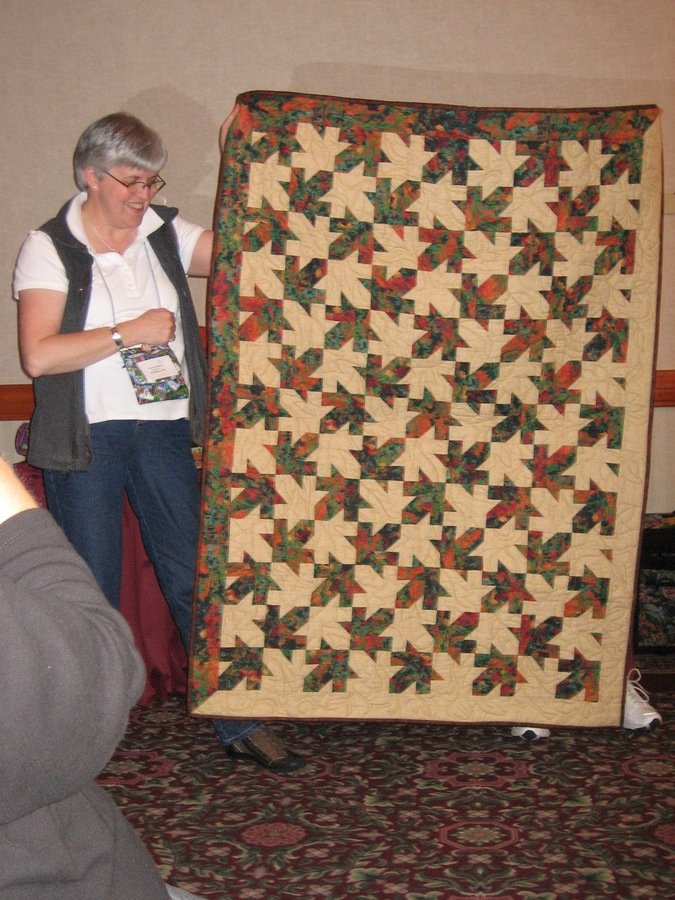 yquiltsalot Tesselating Leaves - Top completed in a class with Jackie Robinson a few years ago and FINALLY finished in March 2009, in time to donate to my online quilt guild's challenge to make quilts for women battling breast cancer, in honor of our late friend, Jennie Sherlock who lived in Australia. We finished 33 quilts for this! They went to the Seattle Cancer and Wellness Treatment Center in Renton, Washington.