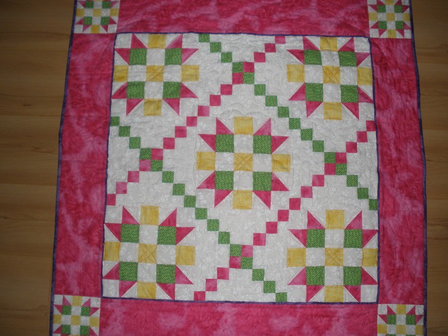 mslibra Sorbet Surprise - Two traditional blocks in EQ6 make up this pattern. Our local quilt shop was looking for a different class and I came up with this table topper - great for practicing 1/2 square triangles and accurate cutting as the cornerstones are only 5"!
