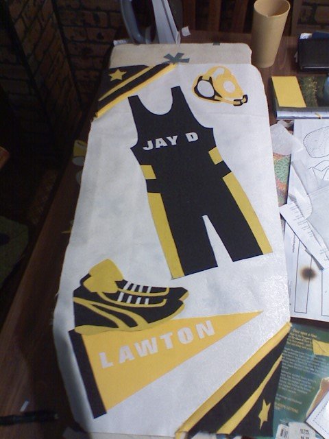 ashhlb7 Wrestling - I made this wall hanging for my brother. I did a quilt stitch around all the pieces