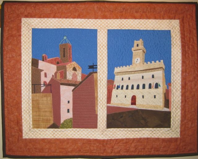 janmt Montepulciano - I had such a wonderful time in the small Tuscan town of Montepulciano. I took many pictures and decided to try and convert a couple of the photos to a small, applique picture quilt. I am very happy with the results.
