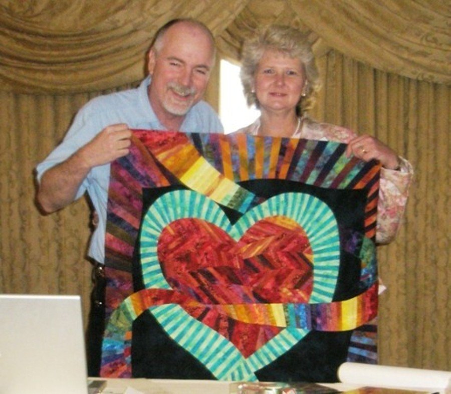 CMOELLERS The Beat Goes On - The music will never die! - This quilt I made for a friend that lost his guitar workshop during the June 2008 floods we experienced in Greene, IA. I wanted to do something special and so I asked permission from Ricky to make this quilt. It is so fitting - The Beat Goes On. The music will never die and my friends, Dave and Christine have decided to stay in Greene and continue their business of making their guitars. Thank you Ricky for sharing your special gifts and inspiring all of us each and every day.