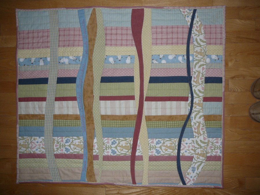 citaborea Baby Quilt for friend - Completely orginal - combination of curved and straight strip piecing.