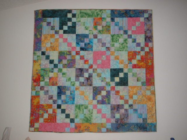 | Design Source - Description | I made this quilt from a bunch of batiks I won in a Fabshop HOp drawing. It has some of my early attempts at machine quilting. It cheers the walls of my home office. |