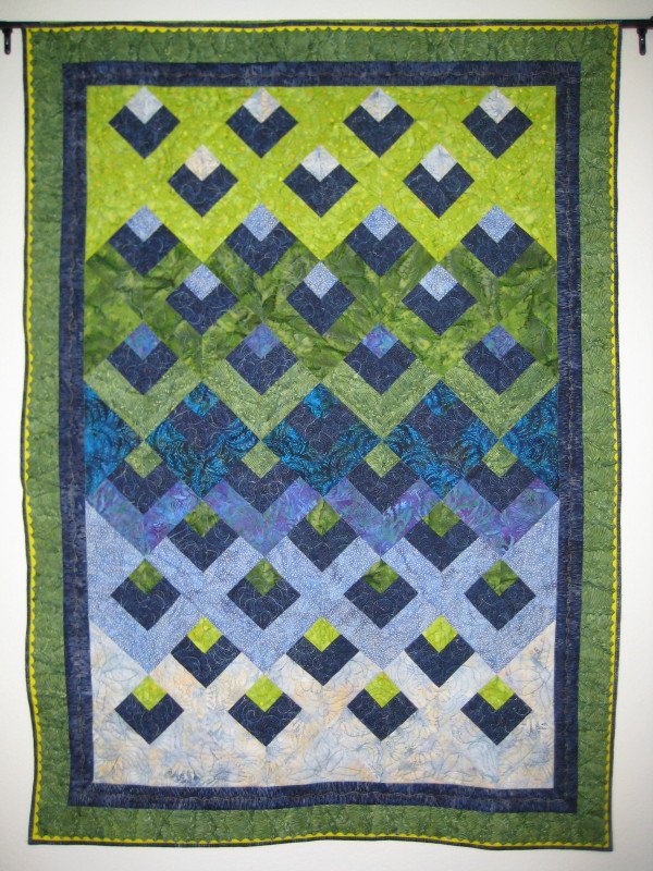 | Design Source - Description | This was a fun, play-with-my-fabrics, quick quilt. The rick-rack in the binding added just the right bright finish it needed! It hangs in my living room. |
