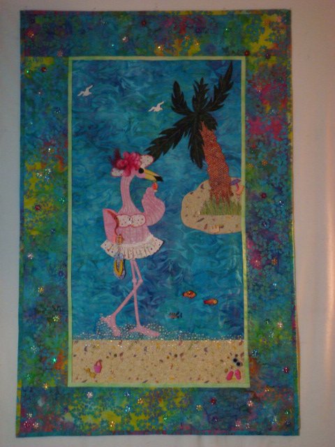 | Design Source - Description | This quilt was begun on a quilting cruise in February, 2009.I added the island and palm tree along with lots of beading to make this project my own. |
