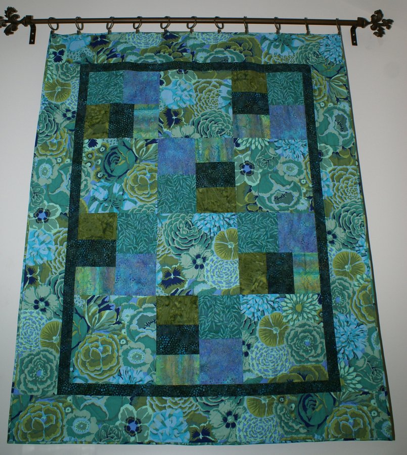 | Design Source - Description | This was my first quilt. I loved the focus fabric so much that I used it whenever I could in other quilts. This quilt reminds me of filtered blue light illuminating the sea floor. |
