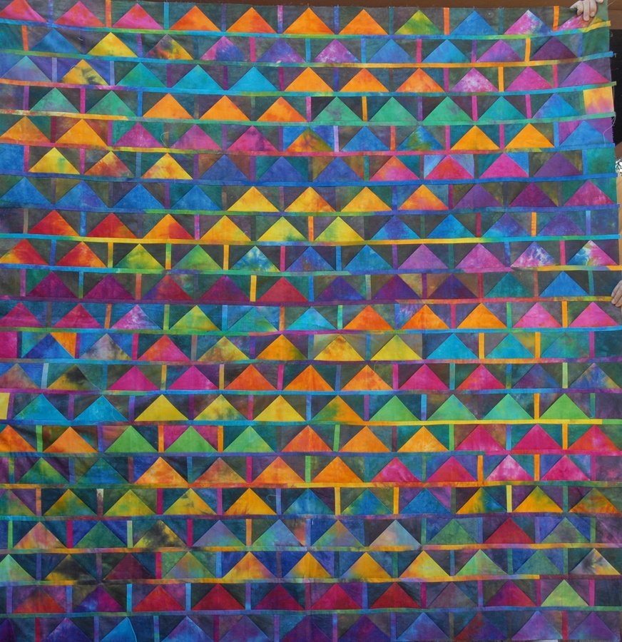 rickysdad Flying Colors Flying Geese - This quilt was made using the folded one-seam flying geese method. It is made from Ricky's hand-dyed fabrics.