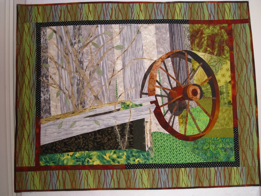 Busymom Wagon Wheel I - This was started in a class with Ruth McDowell. It was designed from a photo taken by my husband who is an amature photographer.