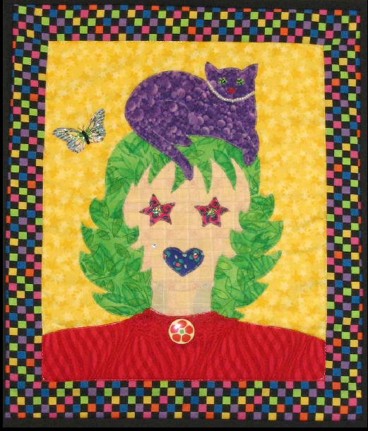 marva Cat Lady - A Self Portrait - One of my quilt guilds asked members to make a small self portrait. This was a lot of fun to make. Mine was the craziest one of all.