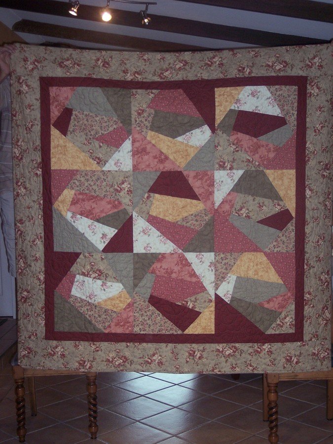 | Design Source - Description | This quilt i made for hubby as he felt left out as every one else were getting a quilt and he did'nt. John picked the colours for his quilt and as you can see it has pink in it as my man loves pink. |