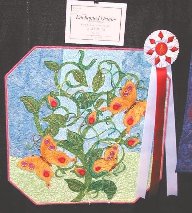 | Design Source - Description | 3-D Art Quilt depicting butterflies being hatched from a "butterfly bush"! |
