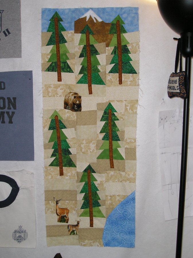 Becky was in our mini group strip quilt round robin, Her theme was The Great Outdoors. This is a view of the mountains and what you might see when you look across. |