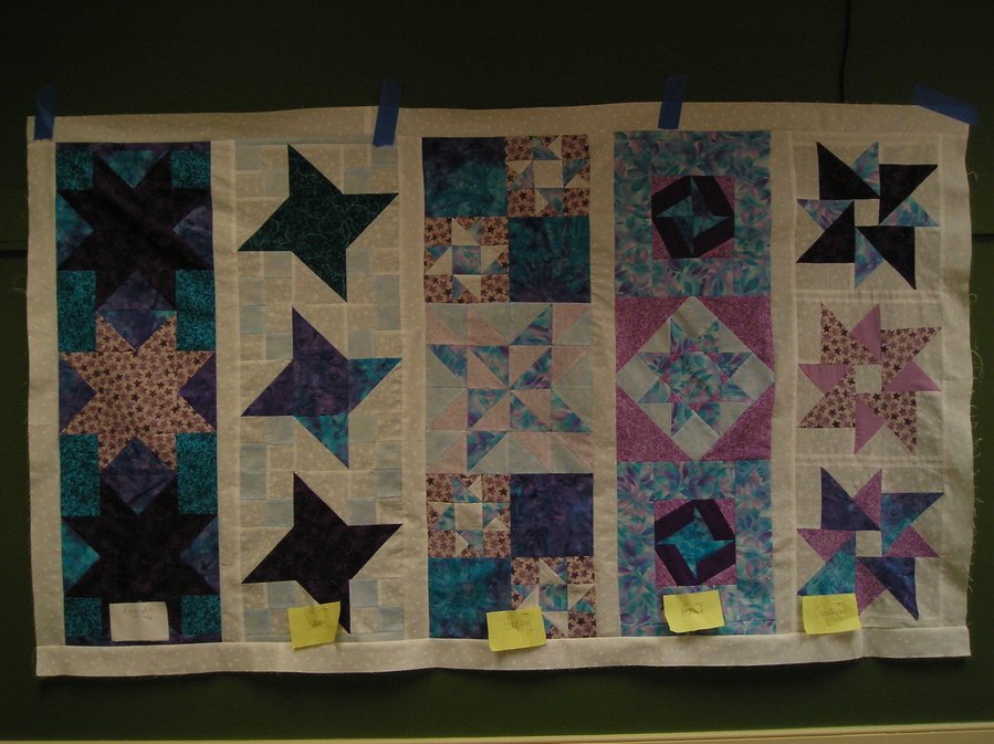 quiltphoenix Stars of love - This is my strip quilt from the round robin project. My theme was stars and I gave them turquoise and purple and white material. This quilt is for my Healing table for when I treat clients with Reiki, a hands on energy healing.