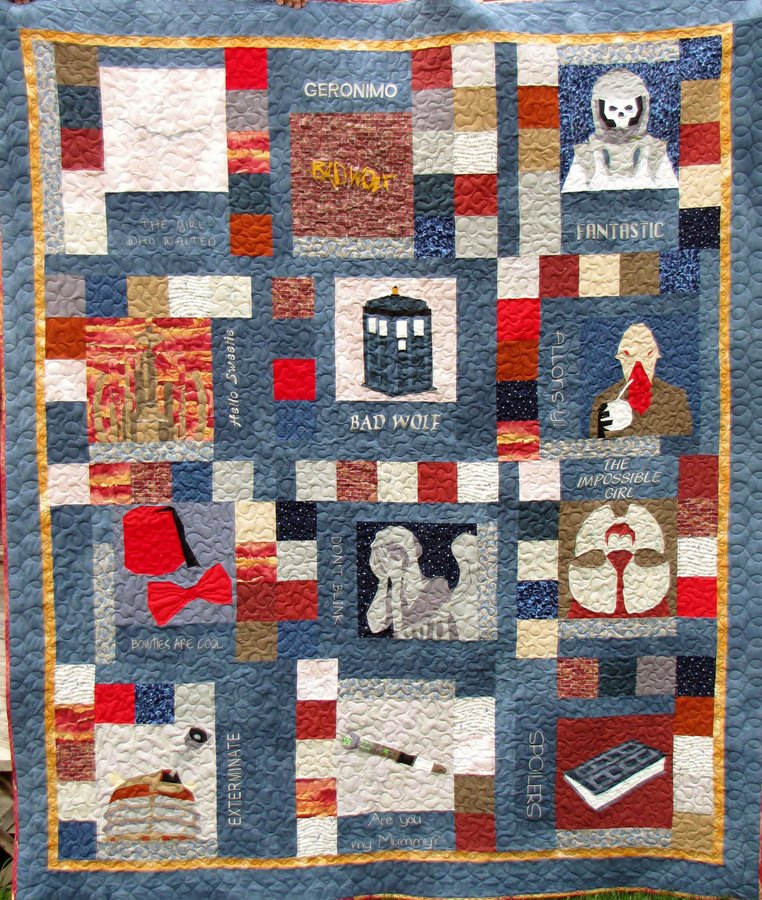 rahhawley Doctor Who - My Granddaughter is a "Whovian". As a graduation from High School gift, I made her this quilt. The paper piecing was very intricate and some blocks took more than 6 hours to complete. I included 2 pieces of fabric printed and sold by Spoonflower. This fabric "made" the quilt. My setting is orignal.