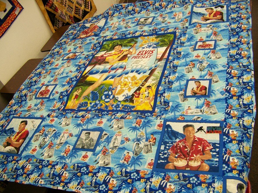 | Design Source - Description | Dawn purchased a lot of Elvis fabric with the hopes of a quilt. This is my design. I purchased embroidery designs and added those to four blocks along with decorative stitching. |