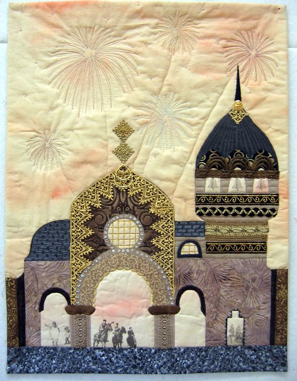 RobinQuilts The Great Gate of Kiev - My interpretation of one of the pictures that inspired Moussorgsky's "Pictures at an Exhibition" - a drawing by 19th century [obscure] artist Victor Hartmann. To be auctioned by Rockford (IL) Symphony Orchestra as part of a fundraiser.