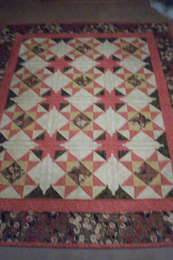 crowefan0517 Morning Has Broken - This was my most challenging quilt to date. It is a "quilt as you go" put together using folding techniques with decorative stitches, also 5 machine embroidered designs in each block and extensive straight line quilting. I named it such because I worked through the night until morning the day I finished it