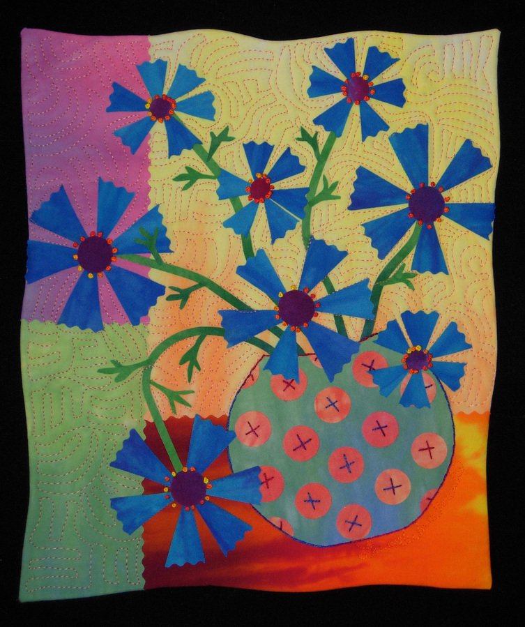 LauraW Blue Cosmos - Second in my series of quilts called Kay's Bouquets.