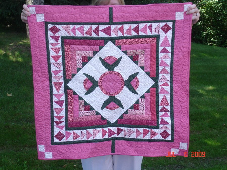 bostonterrierquilter Pinky Round Robin - This quilt was created by three of us in a Round Robin group, I am just getting around to quilting it!