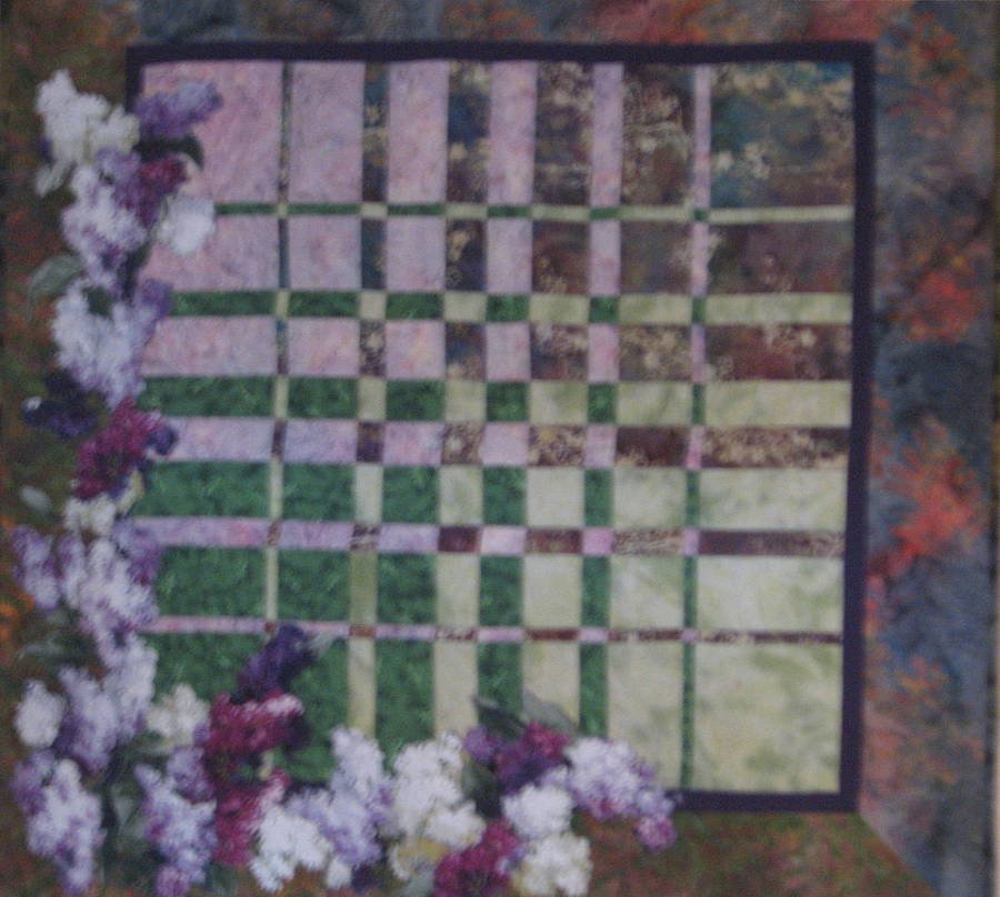 sewmaterialistic Lilac's Convergence - Enhanced Convergence quilt with raw edge applique.