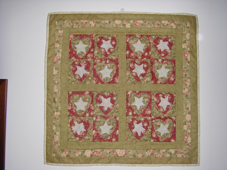 janmax Hearts & Stars - I bought this quilt as a kit but changed it as I went along. It should have been a lot larger but smaller is nicer. I love the country colours of the fabric and it hangs well in my home.