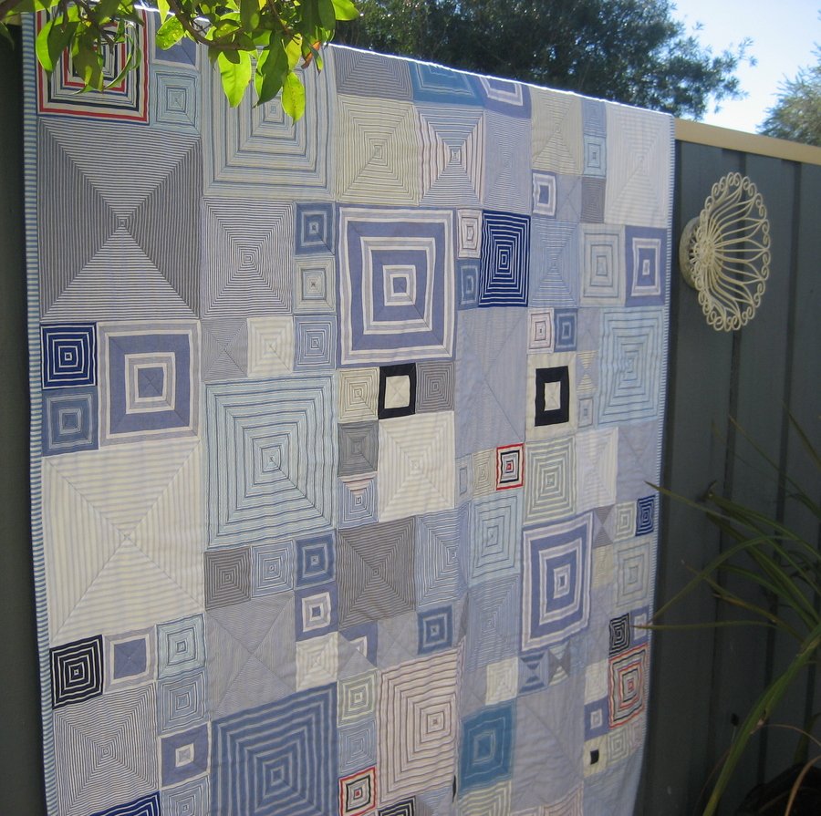 dianah Shirt-Stripe Boxes - This quilt is from a pattern by Kaffe Fassett. I used mostly old shirts sourced from thrift shops, together with a small amount of purchased striped fabrics.