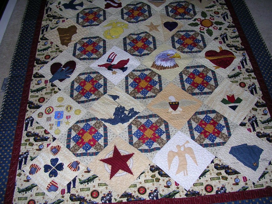 | Design Source - Description | Quilt was designed and made for a guild member who lost her son in Afghanistan in 2008. It commemorates is life as a Marine. |