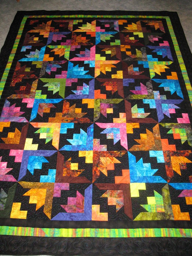 con8487 Sea Paradise - My grandson who will be a fifth grader picked out the pattern and all the fabrics for his quilt. He also went to the quilter with me and chose Hawaii as a theme. The side border has waves, the top border has sea shells and each butterfly has a surf board with a picture in it.