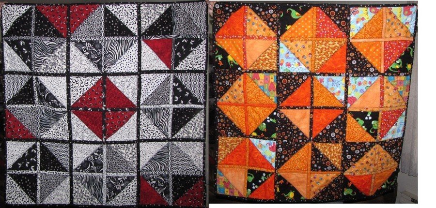 LMMQuilt Spike's Baby Quilt - Designed for great-nephew, the front is black/white/red (mom's favorite colours) and the back is orange/black (dad is colourblind but likes orange!).