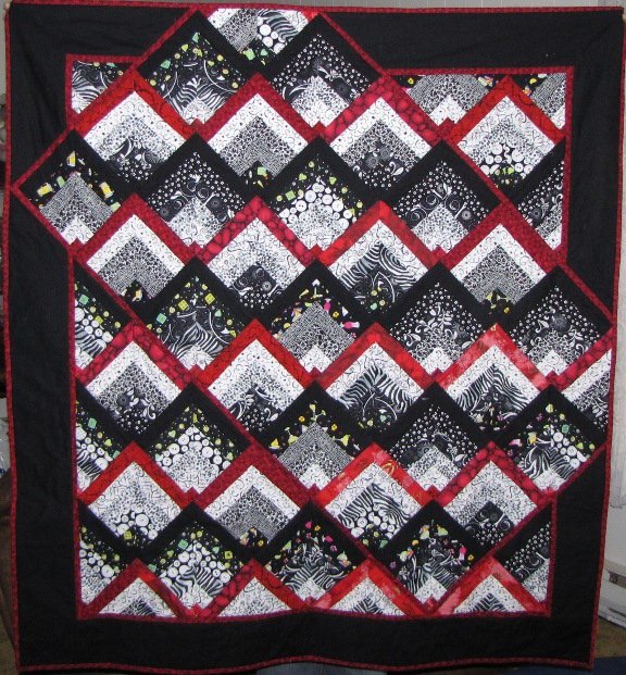LMMQuilt Outside the Box - This quilt is my daughter's graduation gift - she likes bold designs, black & white with a bit of red. The pattern translated to me - thinking outside the box - a good tool for succeeding in life :) I adapted Maaike's pattern to enlarge the quilt - added rows and rejigged corners.