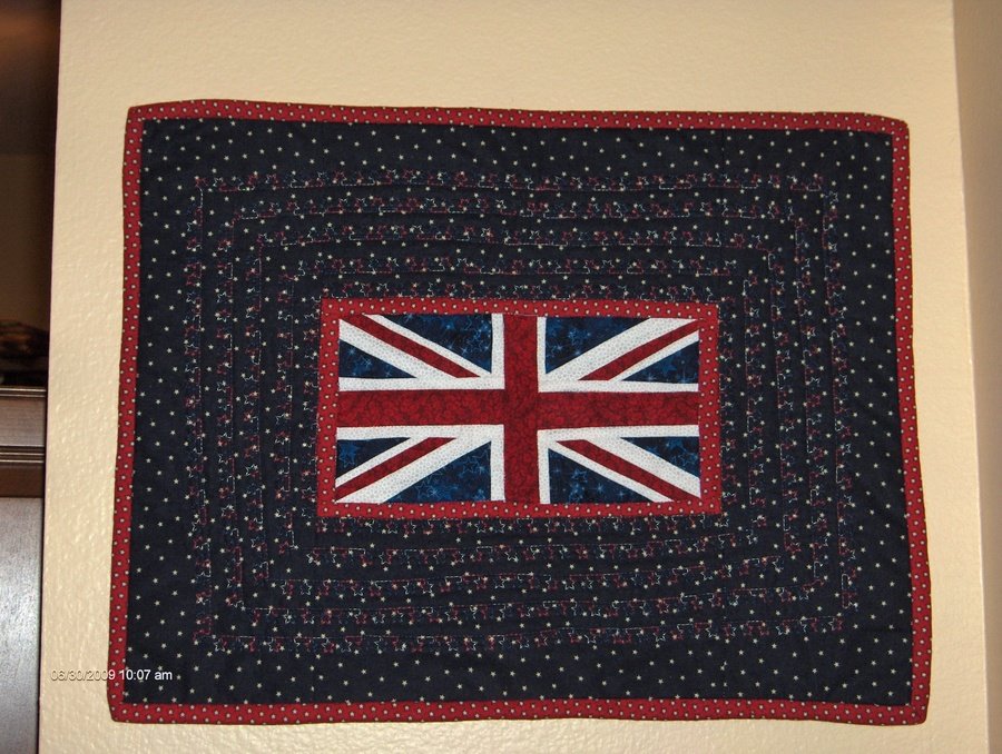 | Design Source - Description | This was made as a gift for our friends in UK. We recently visited and celbrated the 4th of July with them. I used red white & blue fabrics from my stash to create the Union Jack the flag of the United Kingdom. |