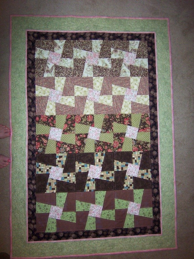 DSoelke Mint Chocolate Chip - I took Ami Simms' Twisted Sister workshop in March 2009. I was making quilts for my twin granddaughters (born May 17, 2009) and Twisted Sister seemed an appropriate pattern. I made Chocolate Covered Cherries for Ava James Soelke and Mint Chocolate Chip for Mattie Jansen Soelke. LOVE the pattern. Can't wait to make another Twisted Sister!