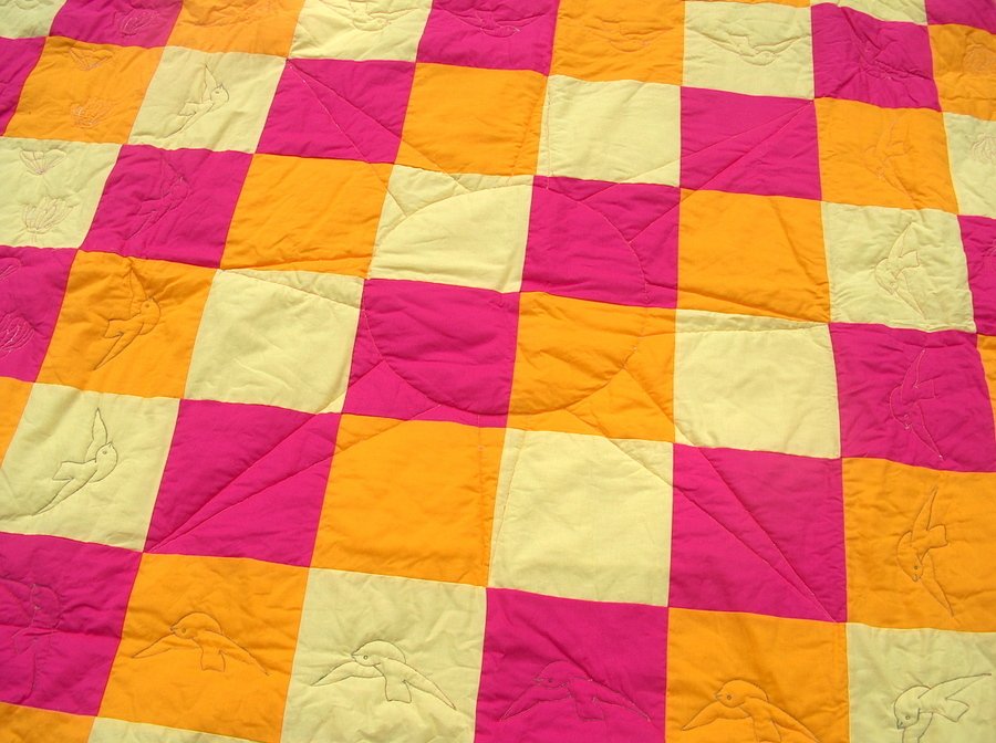 | Design Source - Description | This is a play quilt for my daughter Nina. With the sun in the middle. Around the sun swallows and flowers. And on the outsides the numbers 1to 10 and the alphabeth. |