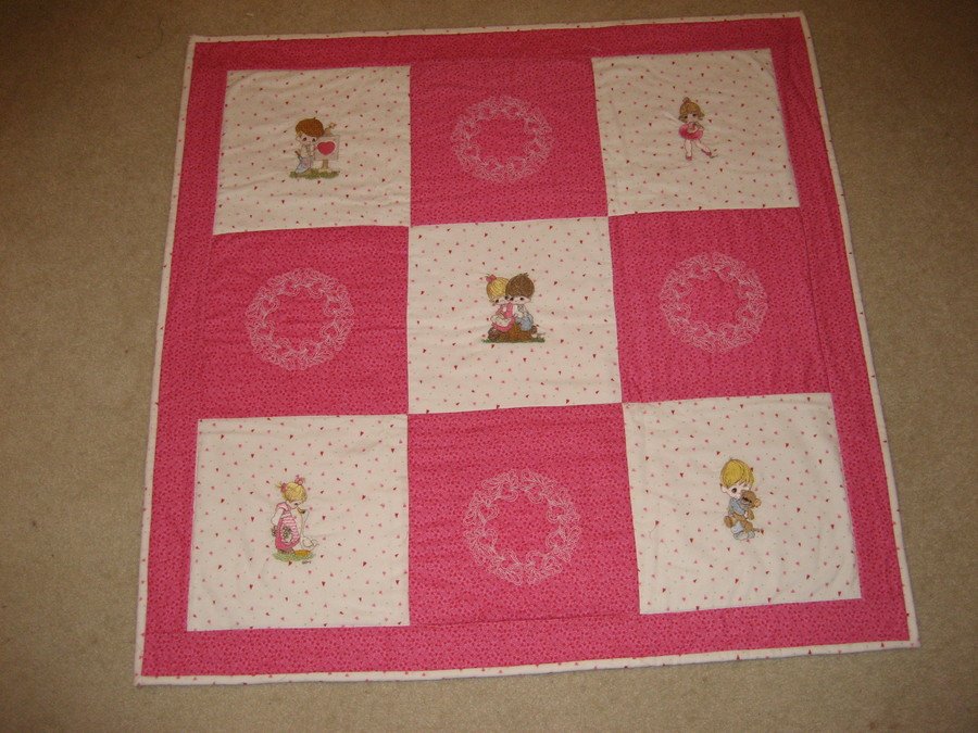 | Design Source - Description | All blocks are embroidered and then pieced and sashed together. Fun baby girl quilt. |