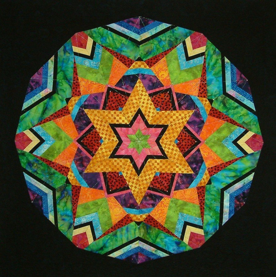 quiltmusic Reflections - I was amazed at how quickly and easily this went together. It was fun to draft out the design and watch it come together in color. I wanted to imitate how real kaleidoscopes look when peering through the tube.