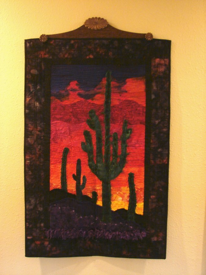 | Design Source - Description | Shades of a colorful sunset sky done in batiks with a large cactus in the foreground. |