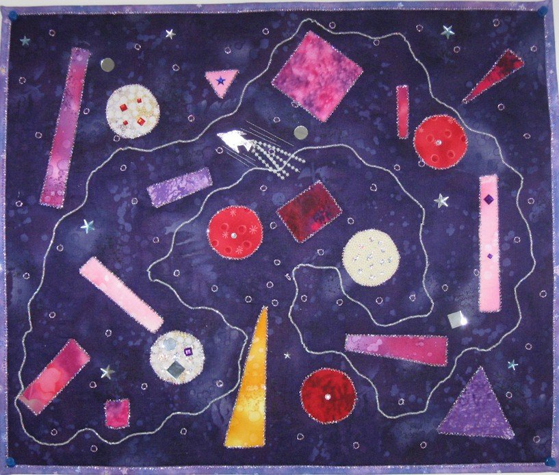 LilyBee Lost in Space Debris - Whimsical idea based on former NASA contact memories and recent spaceship excursions. The spaceship has "USA" and "NASA" penned on it.