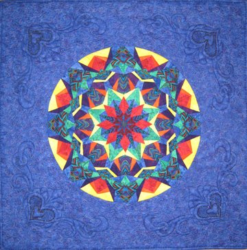 | Design Source - Description | This kaleidescope was made from challenge fabrics from the Pueblo Quilt Expo. It was paper pieced from a design created from EQ5. |