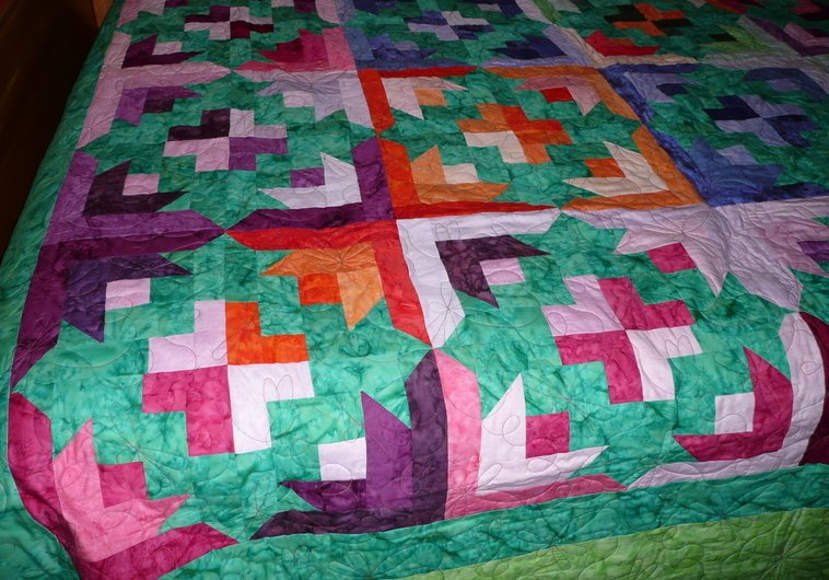QuiltingGram36 Kaleidiscope????? - From a class project in strip piecing - blocks were turned around to connect the greens -this was the idea of my son in law. Great colors can't get far away from GREEN!!!!!!!!!!!!!!!!!!