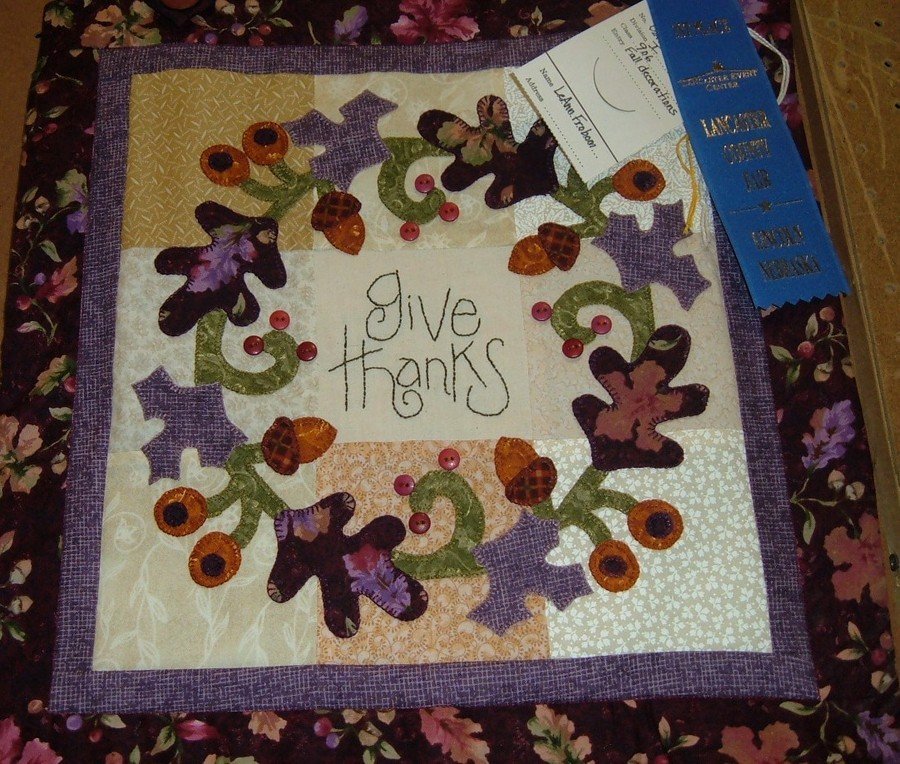 leannlafave Give Thanks - This wallhanging won a blue ribbon at the Lancaster County Fair and a red ribbon at the NE State Fair.